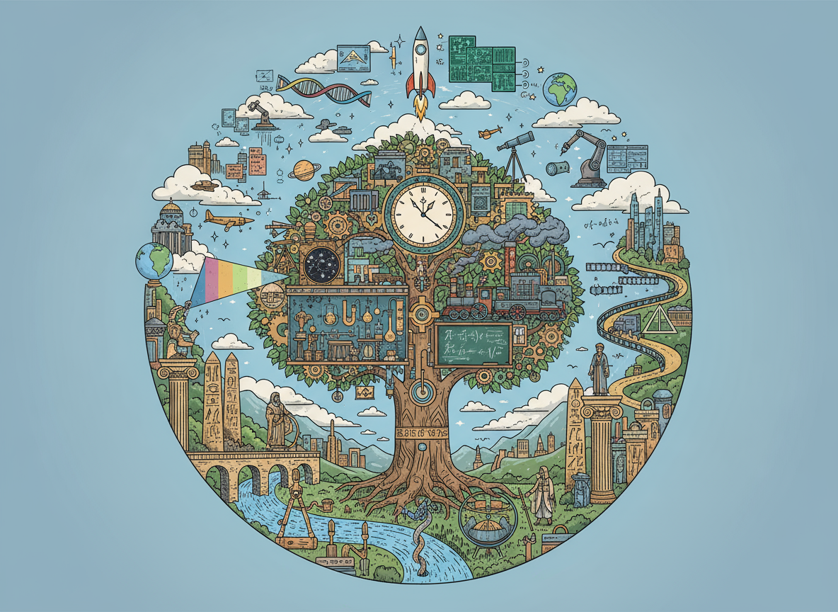 This page is a comprehensive resource presented as a timeline showcasing pivotal inventions and discoveries across the domains of science, mathematics, engineering, art, and technology (STEAM). It also highlights the individuals who made these groundbreaking contributions and includes intriguing related facts.