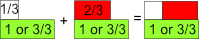 Addition of fractions | Create fractions with identical rods as the denomenator or value of one, then join the rods representing the numerator. |