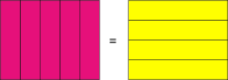 Multiplication | Repeated addition, squares and rectangles, towers Four groups of five; 4 × 5 = 20 Three by four rectangle; 3 × 4 = 12 Five by nine tower; 5 × 9 = 45 |